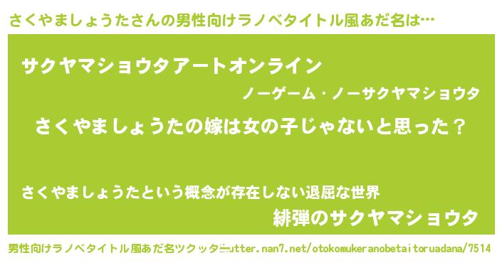 | 伝説のあだ名 | 『覚醒した遊び人さくやましょうた』 |