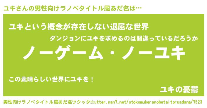 | ヘコむあだ名 | 『ユキ(小並感)』『ユキにゅー』 |