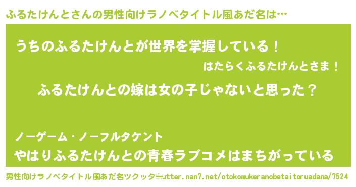 | 女子向けラノベタイトル風あだ名 | 『ふるたけんと様がみてる』 |