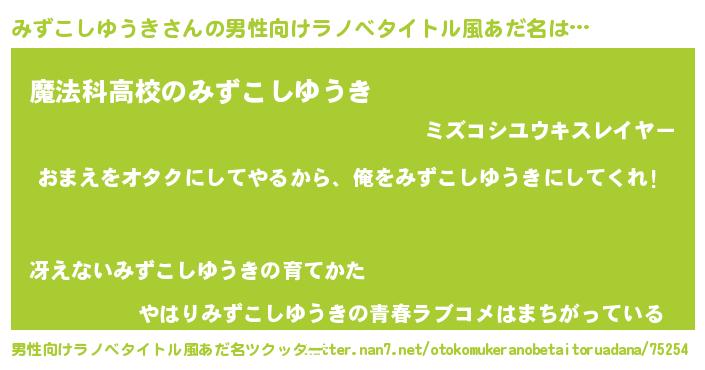 | 女子向けラノベタイトル風あだ名 | 『みずこしゆうき恋絵巻』 |