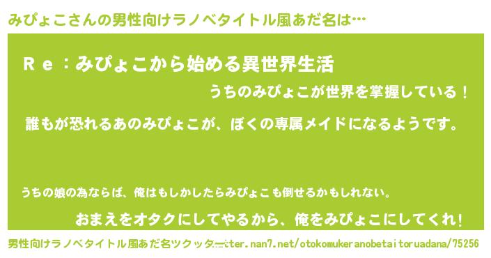 | ヘコむあだ名 | 『みぴょこ(遠い目)』『なまこ酢』 |