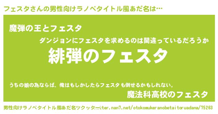 | 意味不明あだ名 | 『住所不定無職フェスタ(12歳)』 |