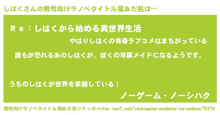 | 胡散臭い通販商品みたいなあだ名 | 『来世でも幸せになれる健康食品…その名も「しはく」』 |