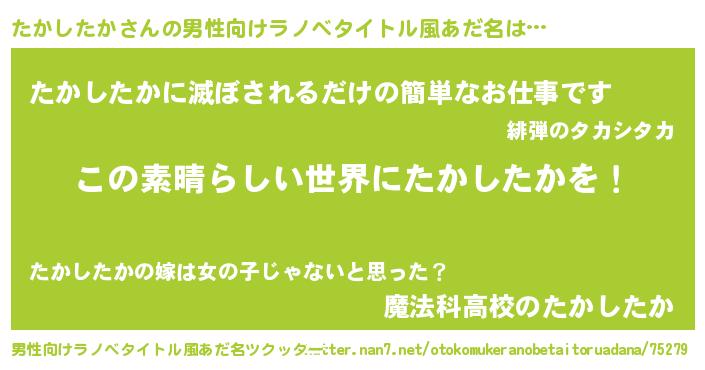 | 胡散臭い通販商品みたいなあだ名 | 『あなたにだけ特別に提供する世界で10本だけ現存している希少なブランデー…その名も「たかしたか」』 |