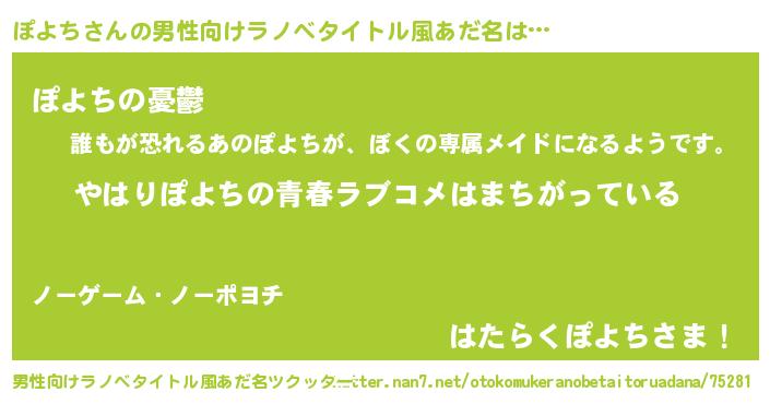 | 女子向けラノベタイトル風あだ名 | 『ぽよちの雑貨屋さん』 |
