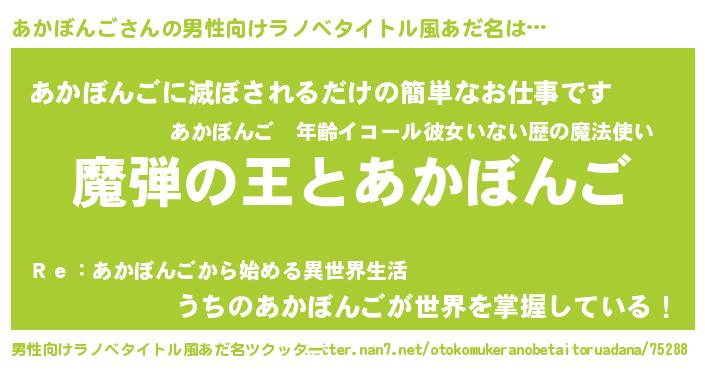 | 意味不明あだ名 | 『住所不定無職あかぼんご(65歳)』 |