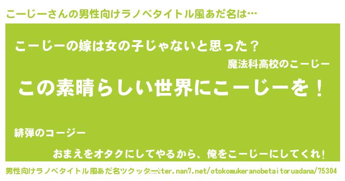 | 女子向けラノベタイトル風あだ名 | 『悪役こーじーに転生したようですが、知った事ではありません』 |