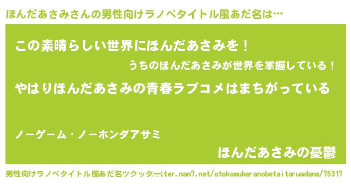 | 女子向けラノベタイトル風あだ名 | 『ほんだあさみの雑貨屋さん』 |