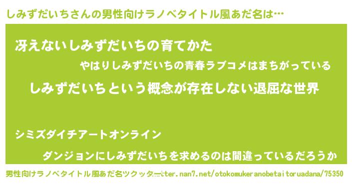 | 胡散臭い通販商品みたいなあだ名 | 『来世でも幸せになれる水素水…その名も「しみずだいち」』 |