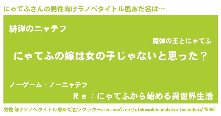 | 女子向けラノベタイトル風あだ名 | 『にゃてふの卵を拾いまして』 |