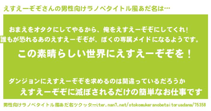 | 胡散臭い通販商品みたいなあだ名 | 『あなたにだけ特別に提供する100年もののヴィンテージワイン…その名も「えすえーぞぞ」』 |