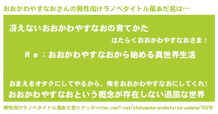 | 意味不明あだ名 | 『自称おおかわやすなお』 |