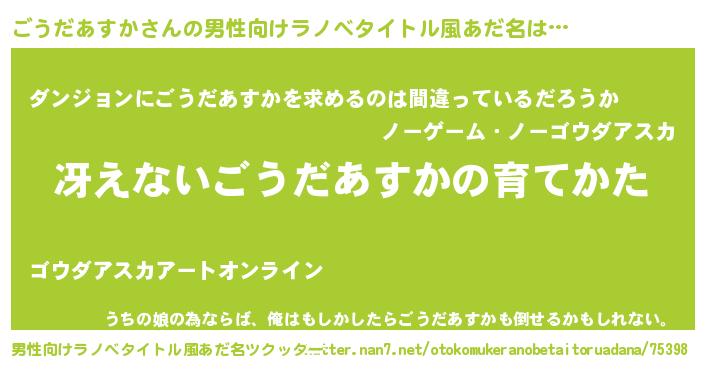 | 女子向けラノベタイトル風あだ名 | 『男装ごうだあすかの憂鬱な任務』 |