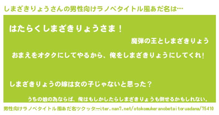 | 胡散臭い通販商品みたいなあだ名 | 『お金では代えられないマグネット磁石…その名も「しまざきりょう」』 |