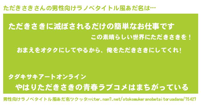 | 女子向けラノベタイトル風あだ名 | 『ただきさき恋絵巻』 |