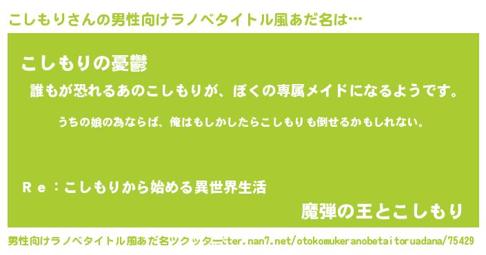 | 女子向けラノベタイトル風あだ名 | 『こしもりの婚約者』『闇のこしもり』 |