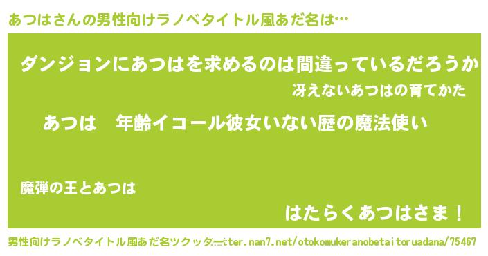 | 女子向けラノベタイトル風あだ名 | 『あつはの玉の輿計画!』 |