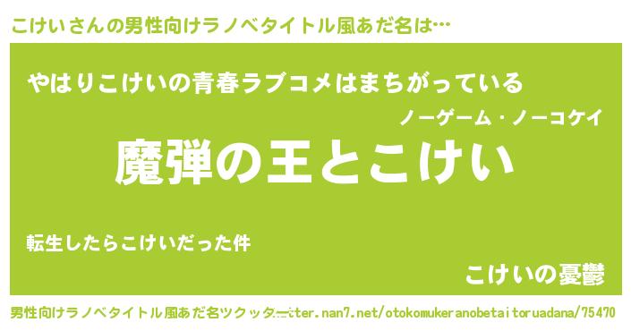| 意味不明あだ名 | 『住所不定無職こけい(12歳)』 |