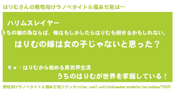 | 女子向けラノベタイトル風あだ名 | 『はりむの卵を拾いまして』『闇のはりむ』 |