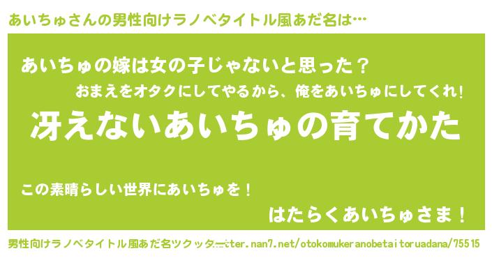 | ヒーロー風カッコイイあだ名 | 『銀牙騎士アイ』『天空の使者あいちゅ』 |