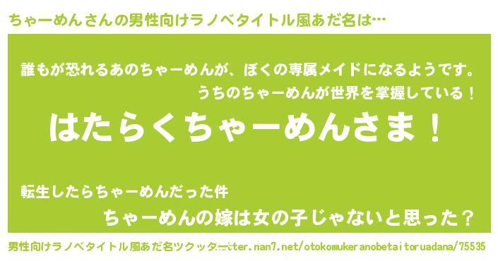 | ヘコむあだ名 | 『ちゃーめん(笑)』『ちゃっちょ』 |