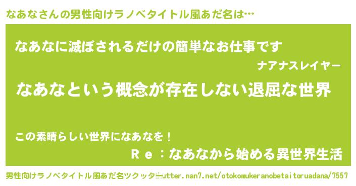 | 女子向けラノベタイトル風あだ名 | 『異世界で失敗しない100のなあな』 |