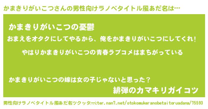 | ヘコむあだ名 | 『豆乳』『かまもー』『かまを』 |