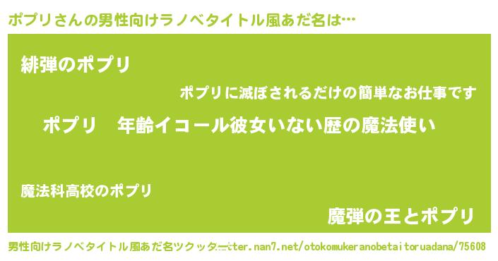 | 女子向けラノベタイトル風あだ名 | 『ポプリの玉の輿計画!』 |