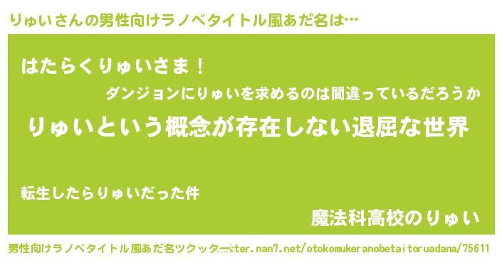 | 女子向けラノベタイトル風あだ名 | 『りゅいの契約王妃』 |