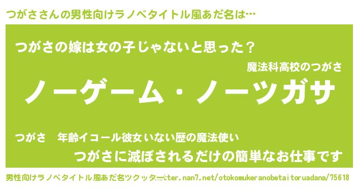 つがささんの男性向けラノベタイトル風あだ名をツクッター!