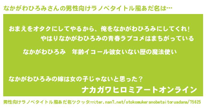 | 意味不明あだ名 | 『ヨモギ科なかがわひろみ属』 |