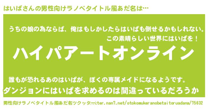 | 胡散臭い通販商品みたいなあだ名 | 『億万長者になれるブレスレット…その名も「はいぱ」』 |