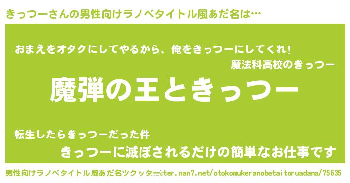 | 意味不明あだ名 | 『住所不定無職きっつー(95歳)』 |