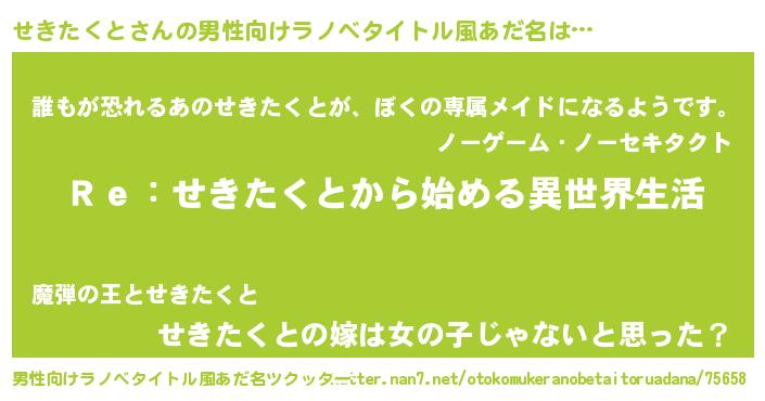| 女子向けラノベタイトル風あだ名 | 『せきたくとストレイドッグス』 |