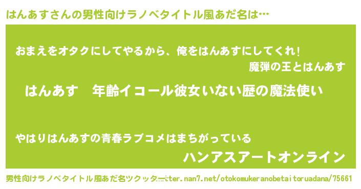| 肩書あだ名 | 『はんあす少将』『はんあす教授』 |