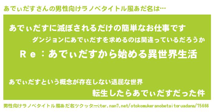 | ヘコむあだ名 | 『あでを』『あでぃだす(遠い目)』 |