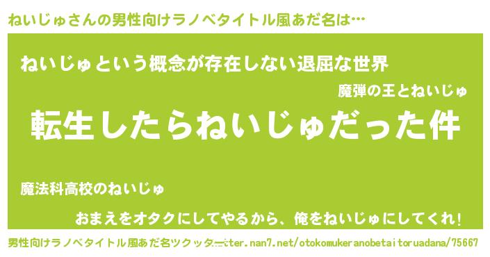 | 料理風あだ名 | 『ねいじゅごはん』 |