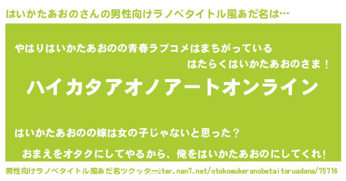 | 胡散臭い通販商品みたいなあだ名 | 『モテモテ間違いなし霊験あらたかなお札…その名も「はいかたあおの」』 |