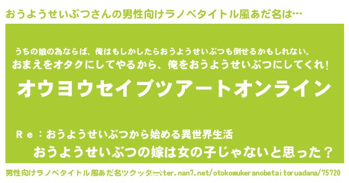 | ヒーロー風カッコイイあだ名 | 『スーパーオウヨウセイブツ』 |