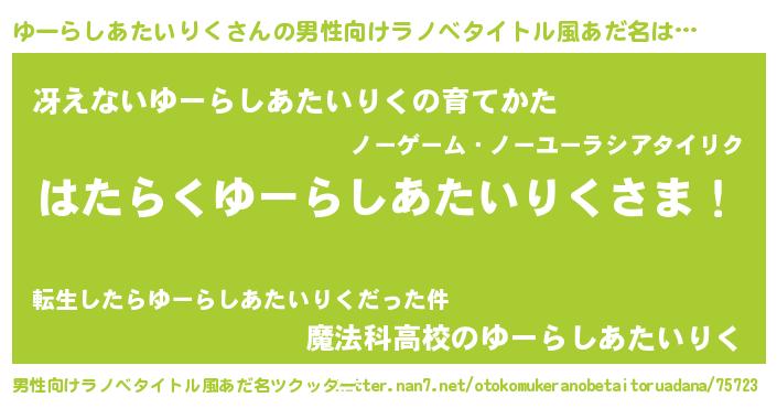 | 意味不明あだ名 | 『自称ゆーらしあたいりく』 |