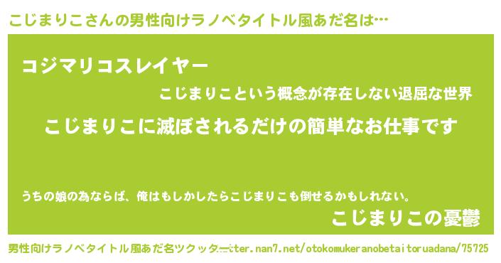 | ヘコむあだ名 | 『こじもー』『こじまりこ(遠い目)』 |
