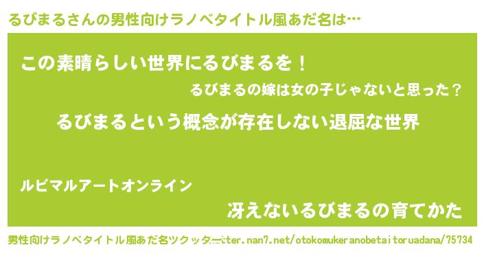 | 女子向けラノベタイトル風あだ名 | 『異世界で失敗しない100のるびまる』 |