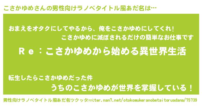 | 女子向けラノベタイトル風あだ名 | 『こさかゆめストレイドッグス』 |