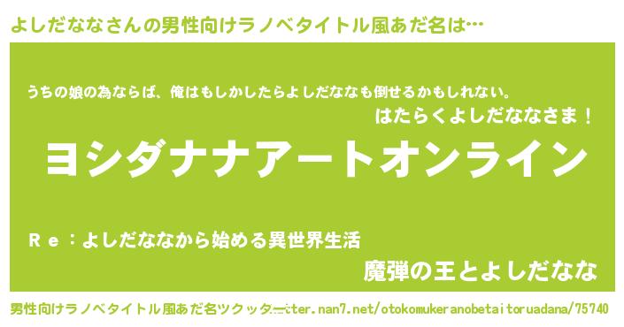 | 胡散臭い通販商品みたいなあだ名 | 『モテモテ間違いなし霊験あらたかなお札…その名も「よしだなな」』 |