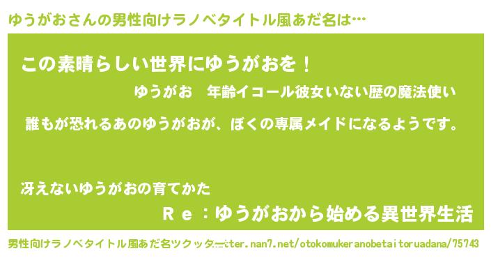 | ヘコむあだ名 | 『ゆうがお(小並感)』『ゆうもー』 |