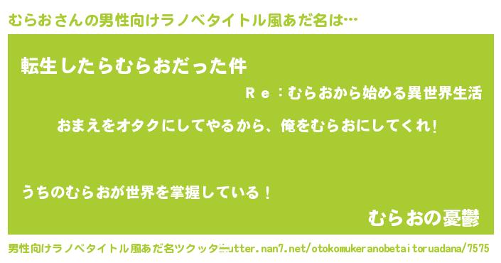| 意味不明あだ名 | 『眠気覚ましガムむらお味』『自称むらお』 |