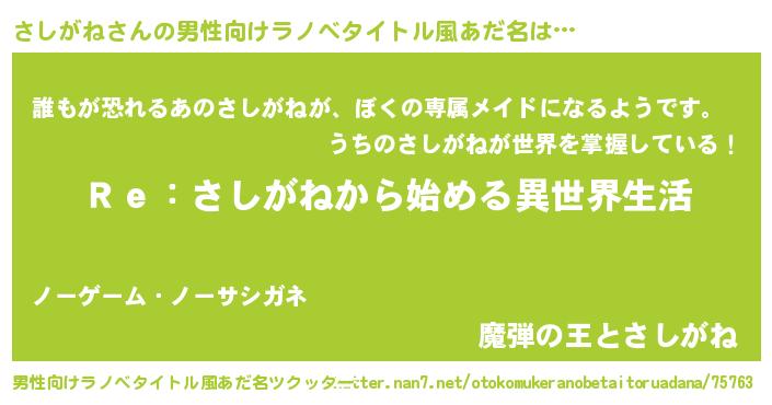 さしがねさんの男性向けラノベタイトル風あだ名をツクッター!