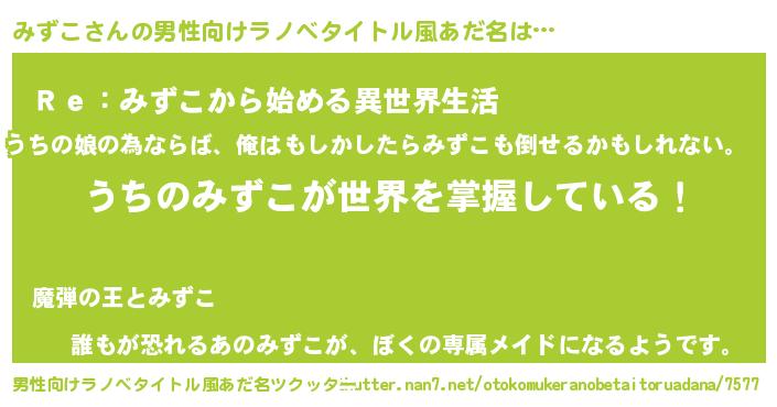 | 胡散臭い通販商品みたいなあだ名 | 『芸能人もオススメするアガリクス…その名も「みずこ」』 |