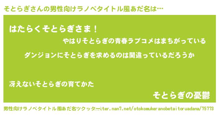 | 胡散臭い通販商品みたいなあだ名 | 『伝統あるネックレス…その名も「そとらぎ」』 |
