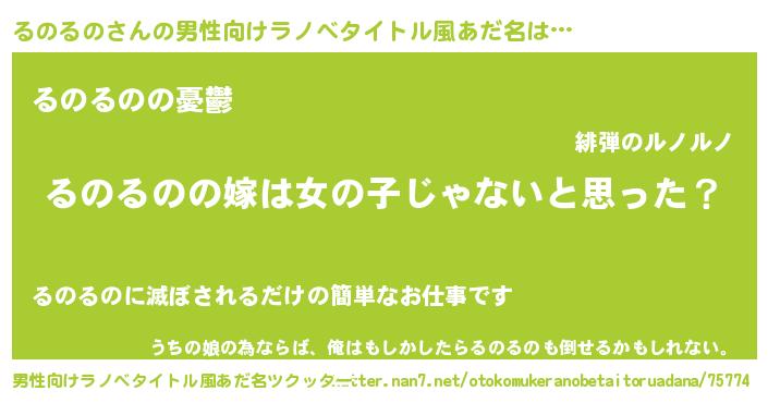 | 女子向けラノベタイトル風あだ名 | 『るのるの様がみてる』 |
